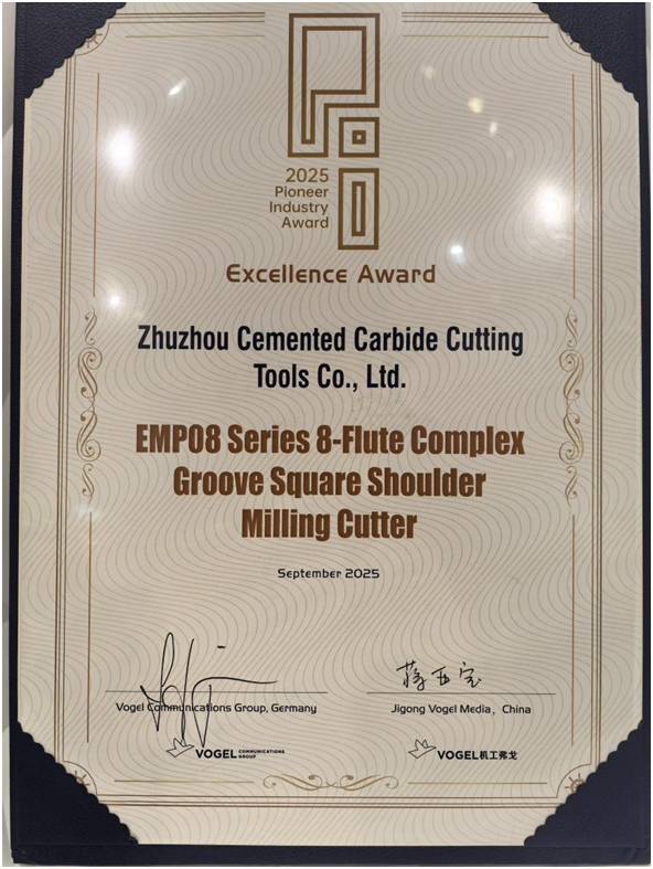 展會(huì )期間,一則喜訊為ZCCCT的“漢諾威之旅”再添光彩——ZCCCTEMP08系列銑刀成功斬獲“PI Award(弗格出海先鋒獎)”!這一獎項旨在表彰在全球市場(chǎng)中展現出創(chuàng )新力與競爭力的企業(yè)及產(chǎn)品,EMP08系列銑刀憑借優(yōu)異的切削性能、廣泛的適用性,以及ZCCCT在海外市場(chǎng)的深耕成果,最終從眾多競品中脫穎而出,成為中國刀具品牌的“獲獎代表”。